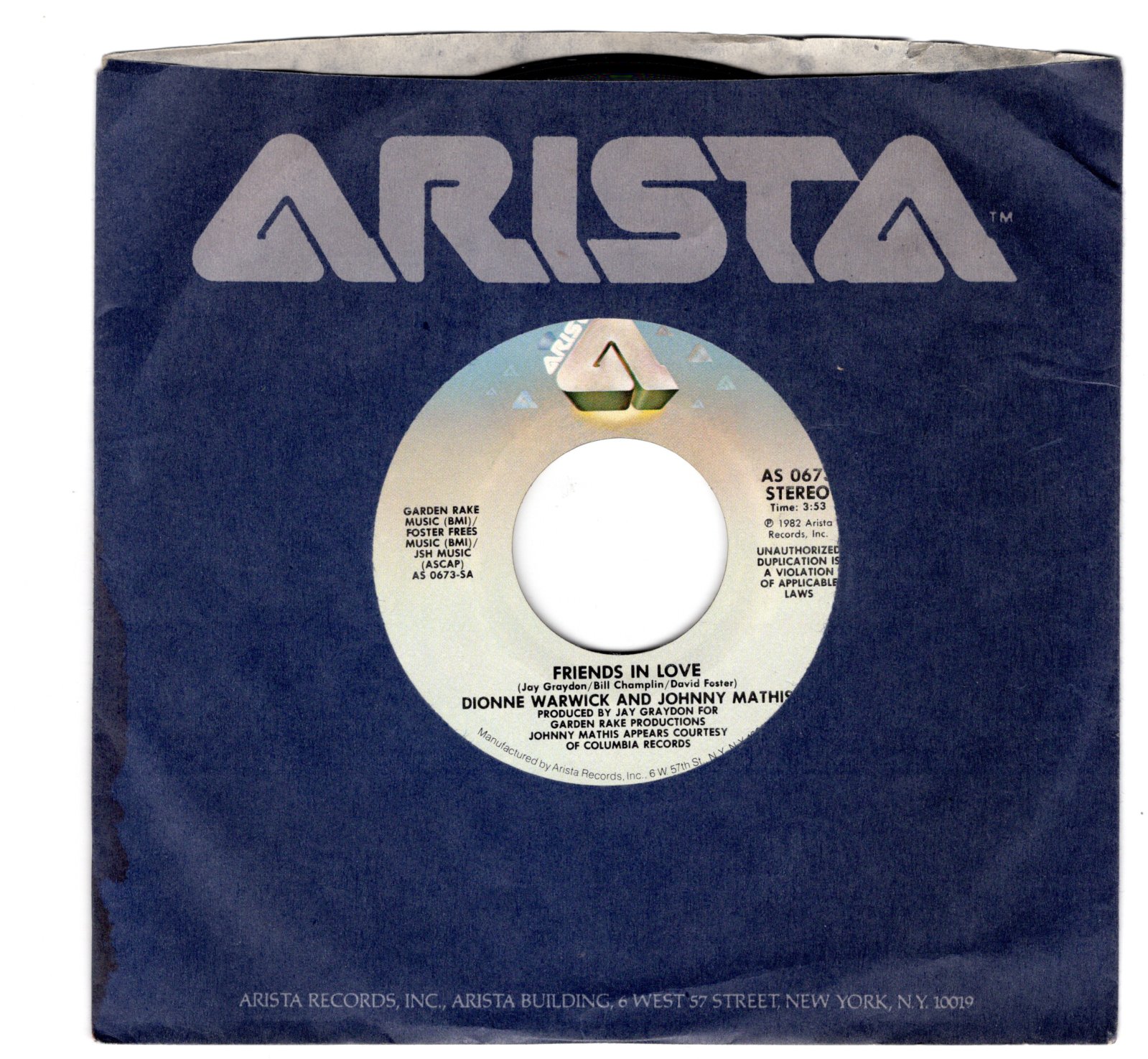 Artist: Dionne Warwick & Johnny Mathis Catalog: AS 673 Genre: BW: What Is This Condition: Size: 45 Grading: Mint Year: 1982 Label: