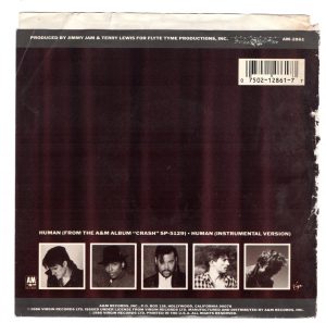 Artist: Human League Catalog: AM 2861 Genre: BW: same instrumental Condition: water damage to side seam Size: 45 Grading: Mint Year: 1986 Label: