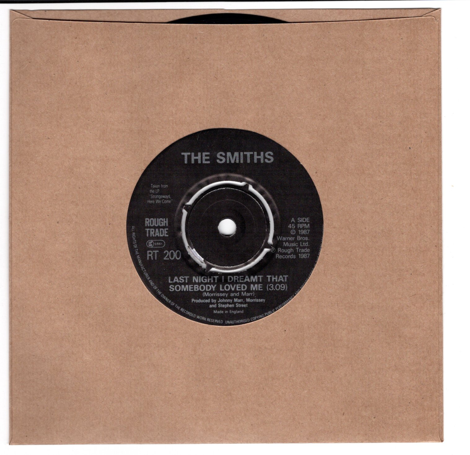 Artist: The Smiths Catalog: RT 200 Genre: BW: Rusholme Ruffians Condition: Size: 45 Grading: VG+ Year: 1987 Label: