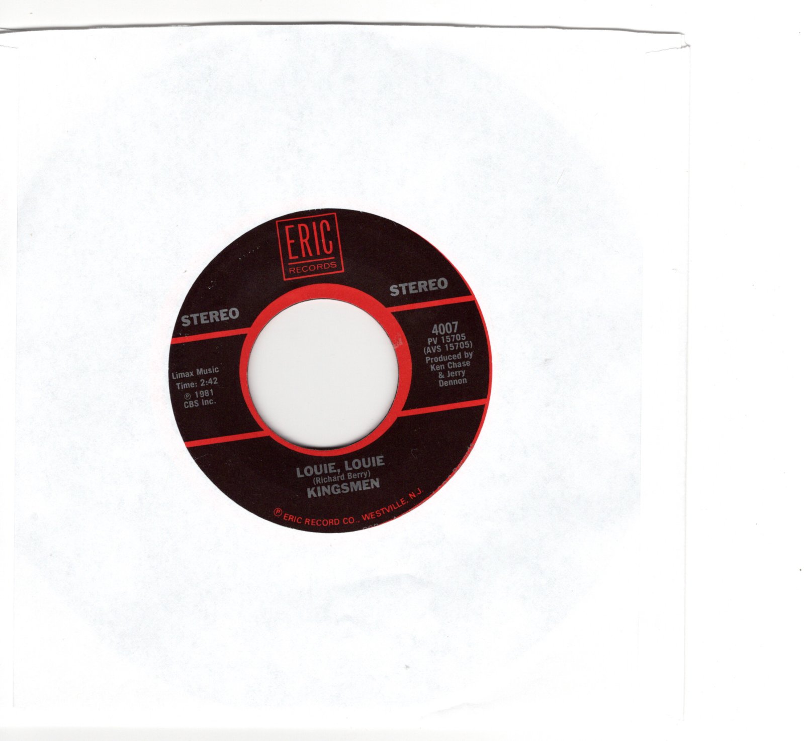 Artist: The Kingsmen Catalog: E4007 Genre: BW: Twist and Shout/Isley brothers Condition: reissue Size: 45 Grading: VG+ Year: 1963 Label: