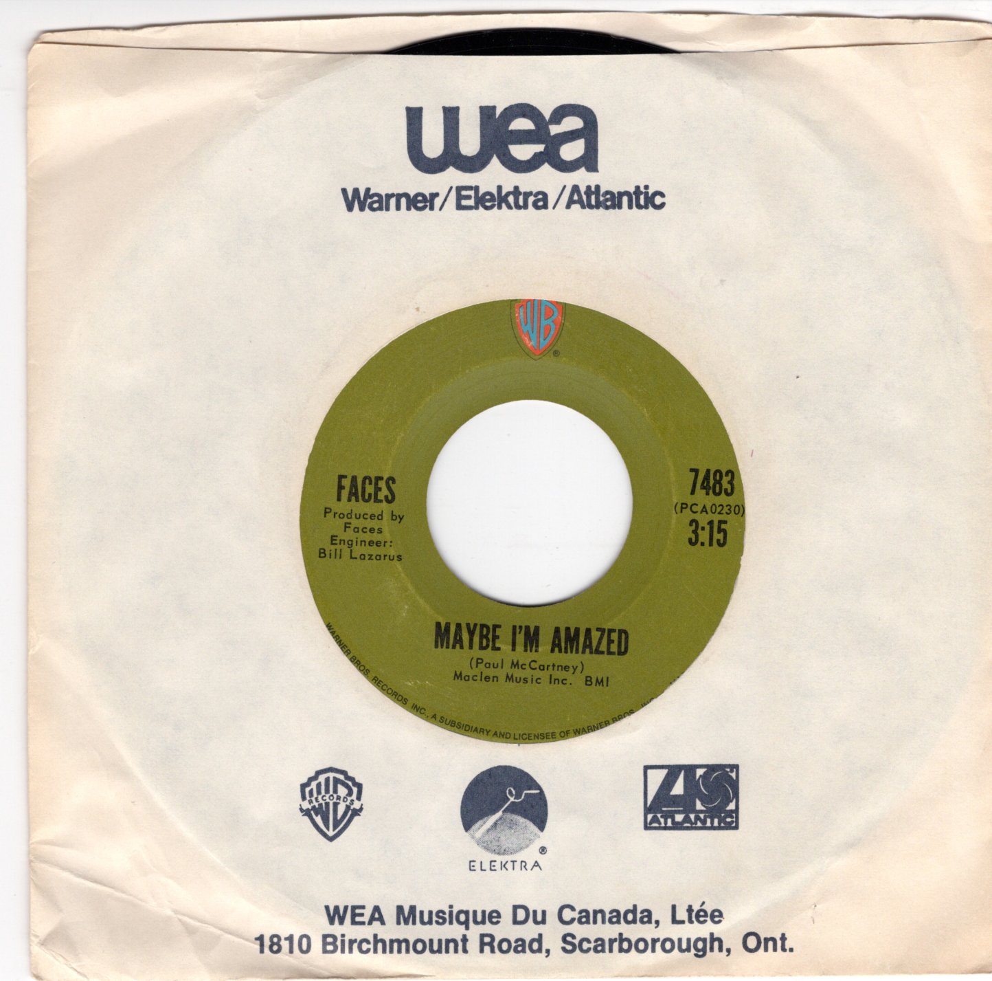 Artist: Faces Catalog: WB 7483 Genre: BW: Oh Lord I'm Browned Off Condition: Size: 45 Grading: VG+ Year: 1971 Label:
