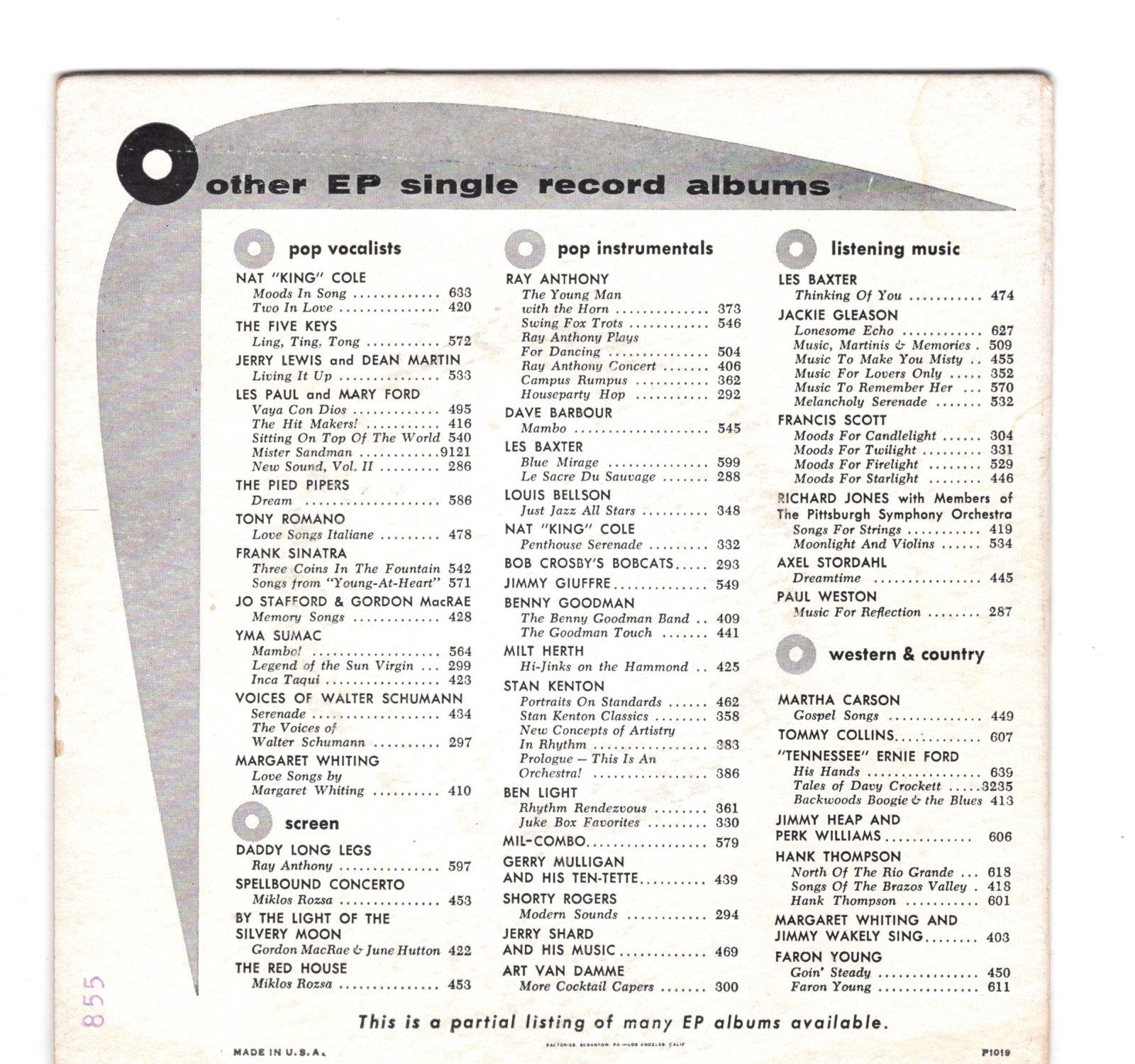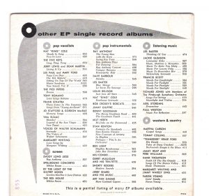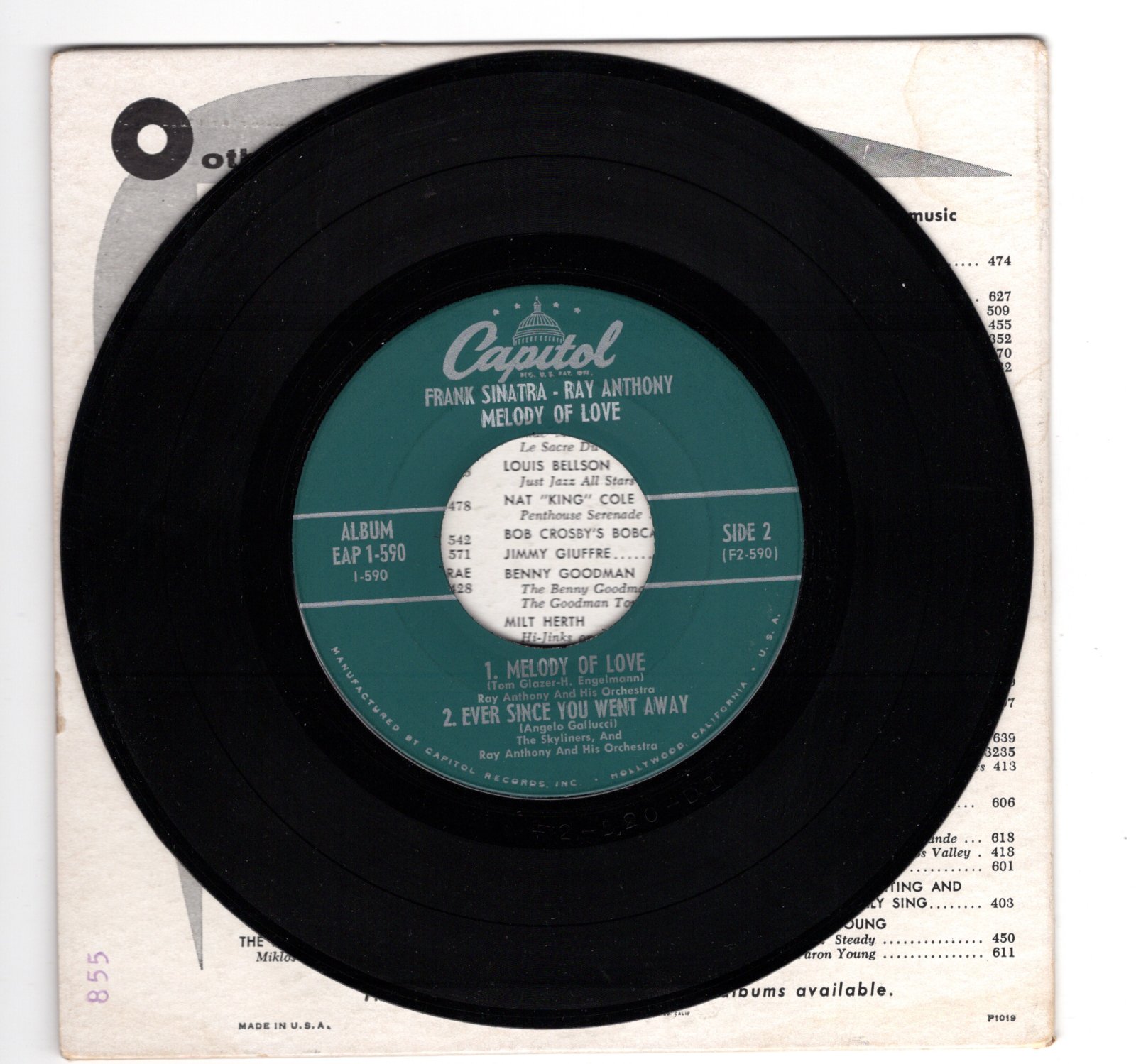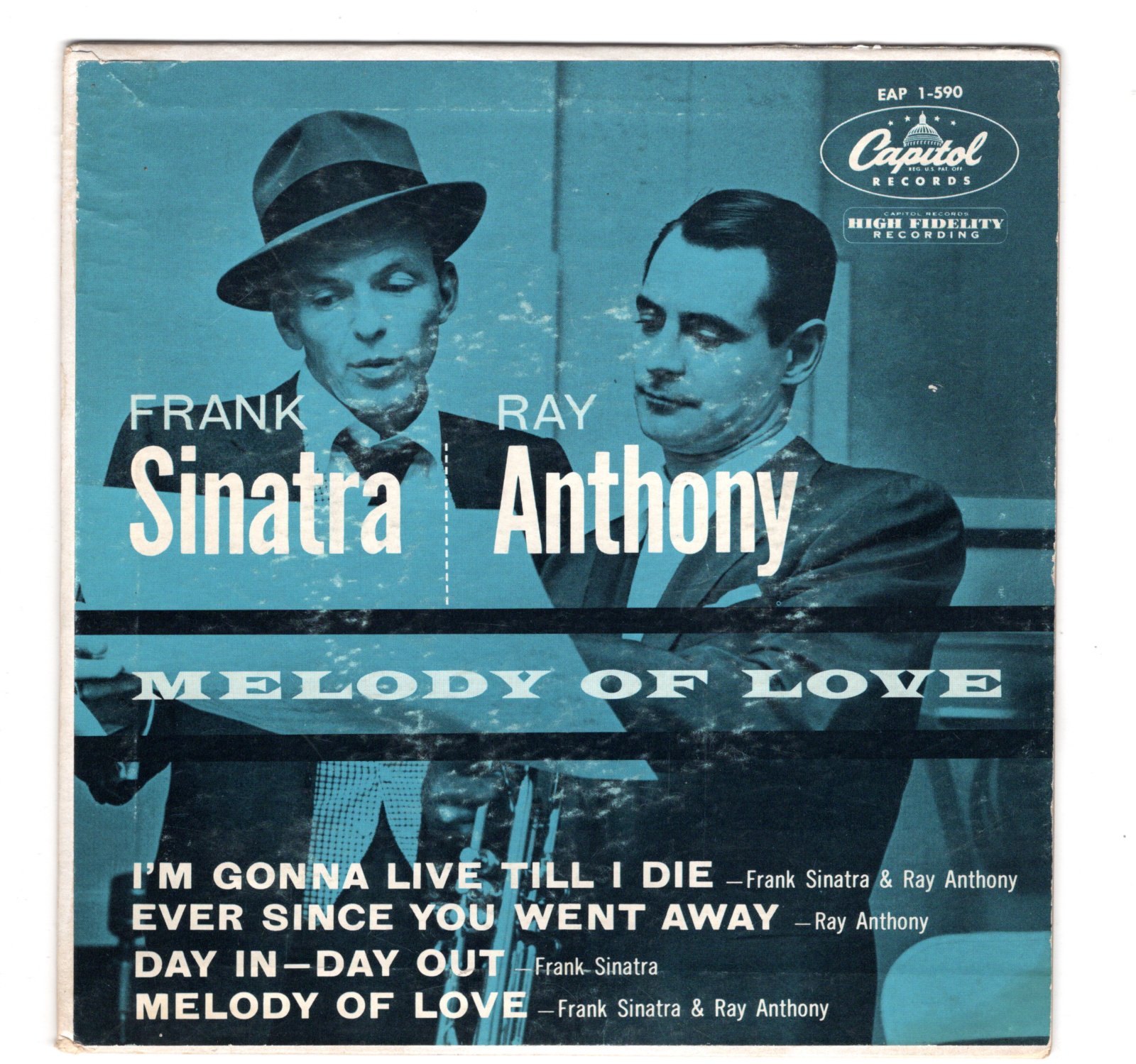 Artist: Frank Sinatra & Ray Anthony Catalog: EAP 590 Genre: BW: I'm Gonna Live Till I Die/Melody of Love Condition: cardboard sleeve Size: 45 Grading: VG+ Year: Label: