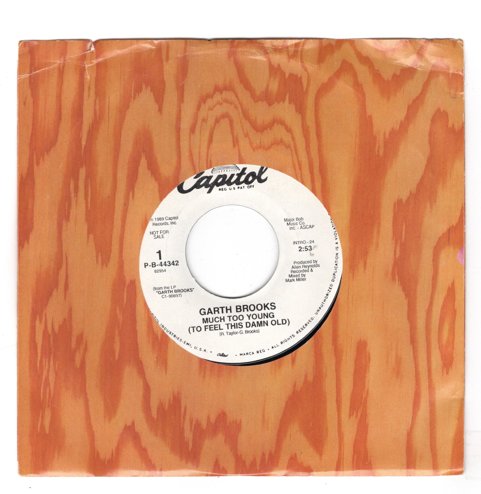 Artist: Garth Brooks Catalog: PB 44342 Genre: BW: same Condition: Promo Size: 45 Grading: VG+ Year: 1989 Label: