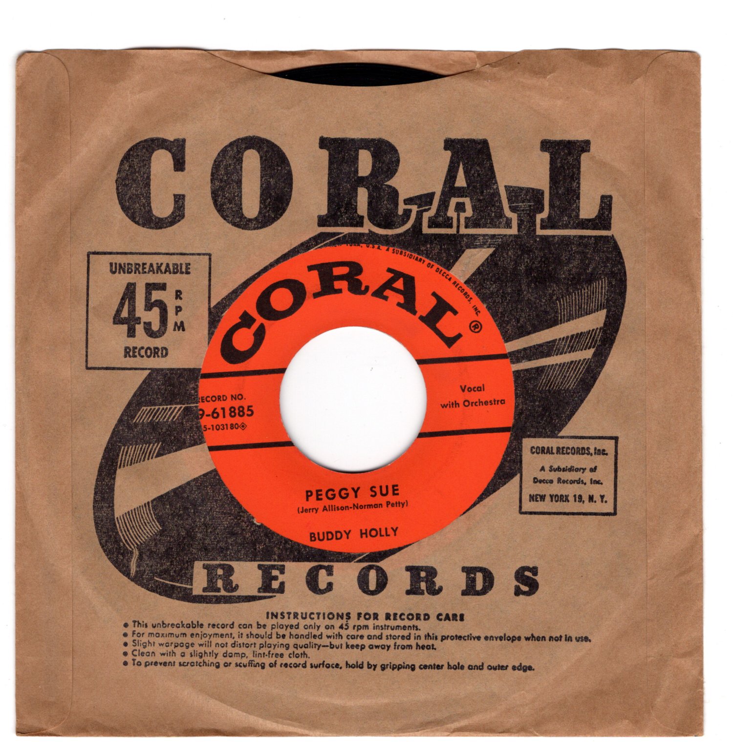 Artist: Buddy Holly Catalog: 9-61885 Genre: BW: Everyday Condition: Size: 45 Grading: VG+ Year: 1957 Label: