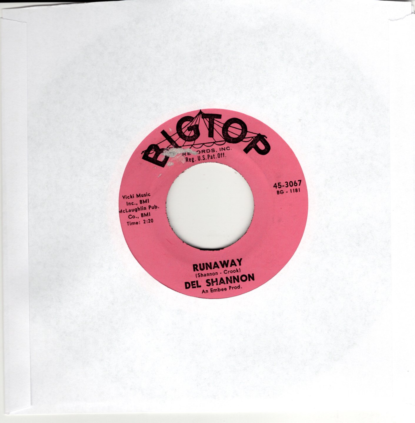 Artist: Del Shannon Catalog: BT 3067 Genre: BW: Jody Condition: TOL Size: 45 Grading: VG+ Year: 1961 Label:
