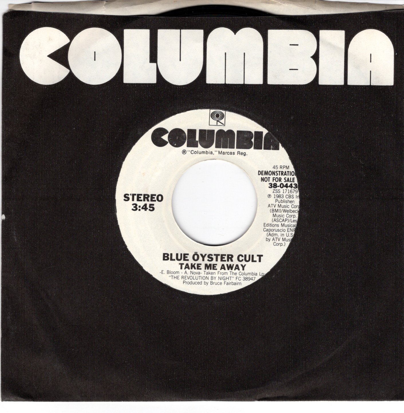 Artist: Blue Oyster Cult Catalog: 38-4435 Categories: , BW: same Condition: Promo Size: 45 Grading: VG+ Year: 1983 Label:
