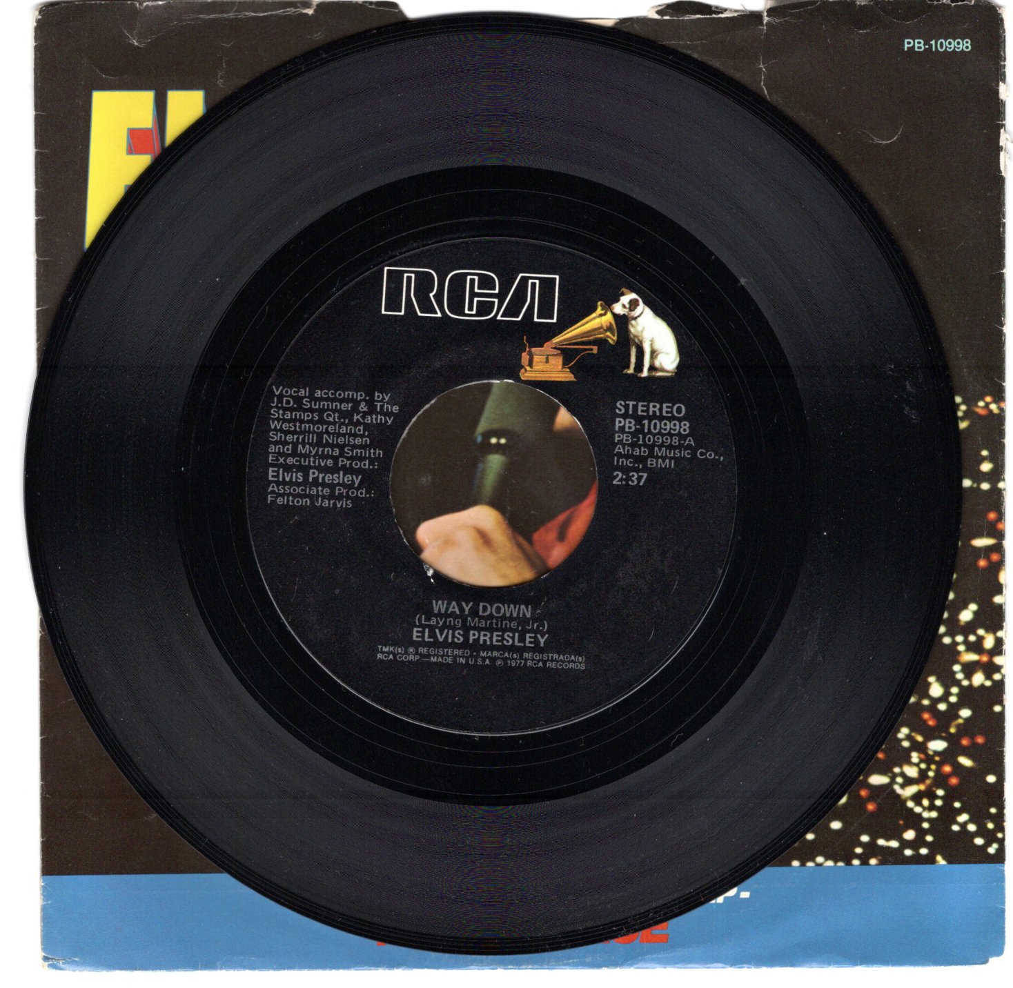Artist: Elvis Presley Catalog: PB 10998 Genre: BW: Pledging My love Condition: slight damage top sleeve Size: 45 Grading: VG+ Year: 1977 Label: