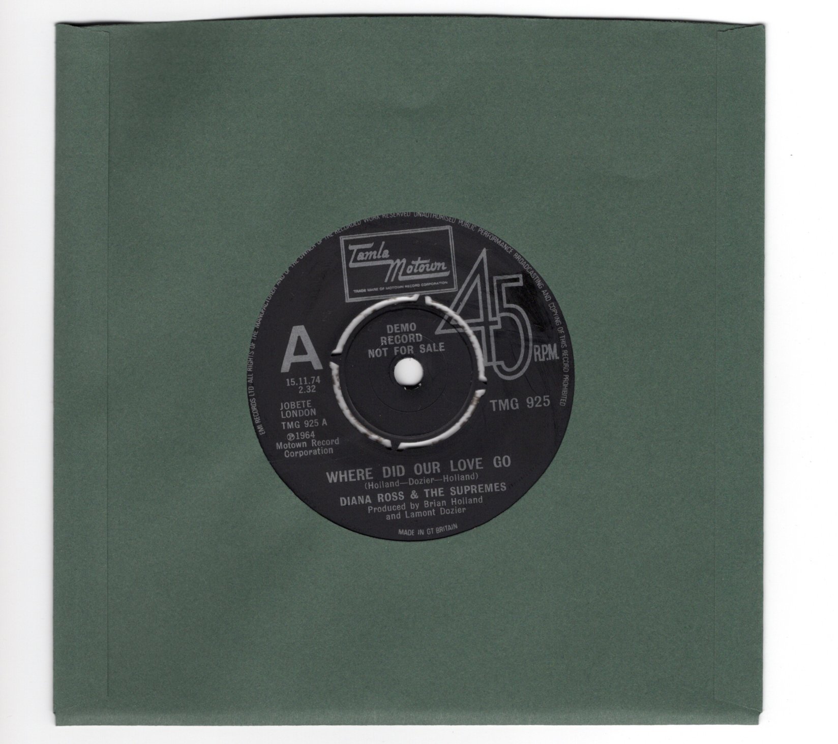 Artist: Supremes Catalog: T925 Genre: BW: Nothing But Heartache Condition: UK import/reissue/Promo Size: 45 Grading: VG+ Year: 1974 Label: